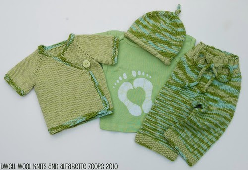 I have been really knitting up a storm lately. For this baby I have been knitting longies and hats mostly. I need to do a hat/bootie set that matches his coming home outfit though!